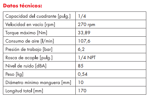CONSULTAR DISPONIBILIDAD Carraca neumática para uso profesional con diseño resistente, ideal para el ajuste en espacios confinados.